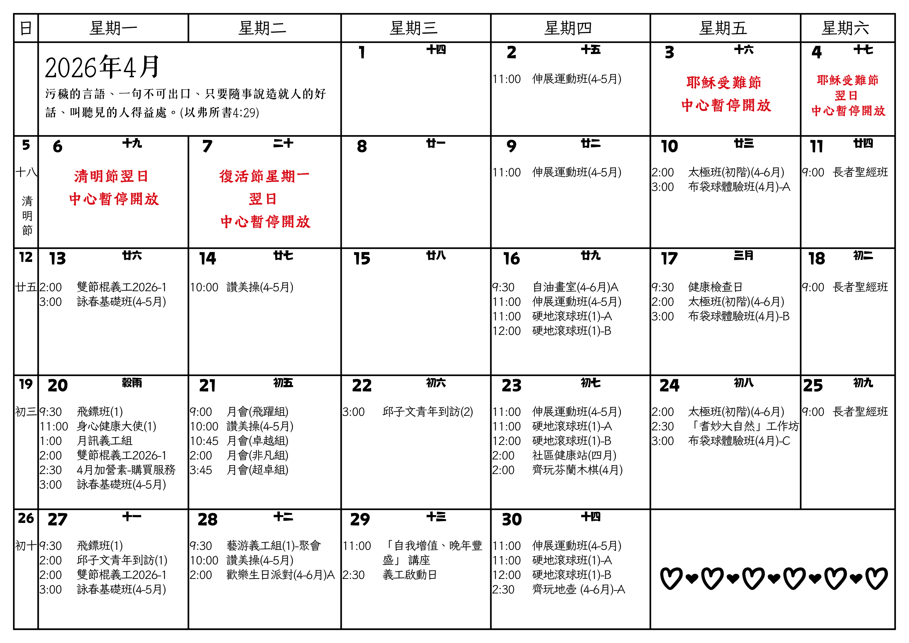 寶林浸信會白普理長者鄰舍中心2026年4月通訊
