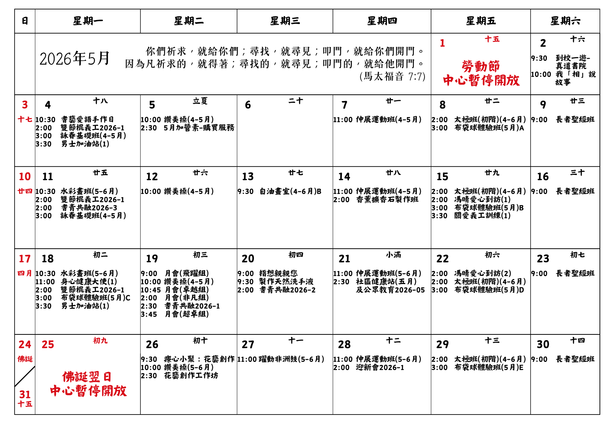 寶林浸信會白普理長者鄰舍中心2026年5月通訊
