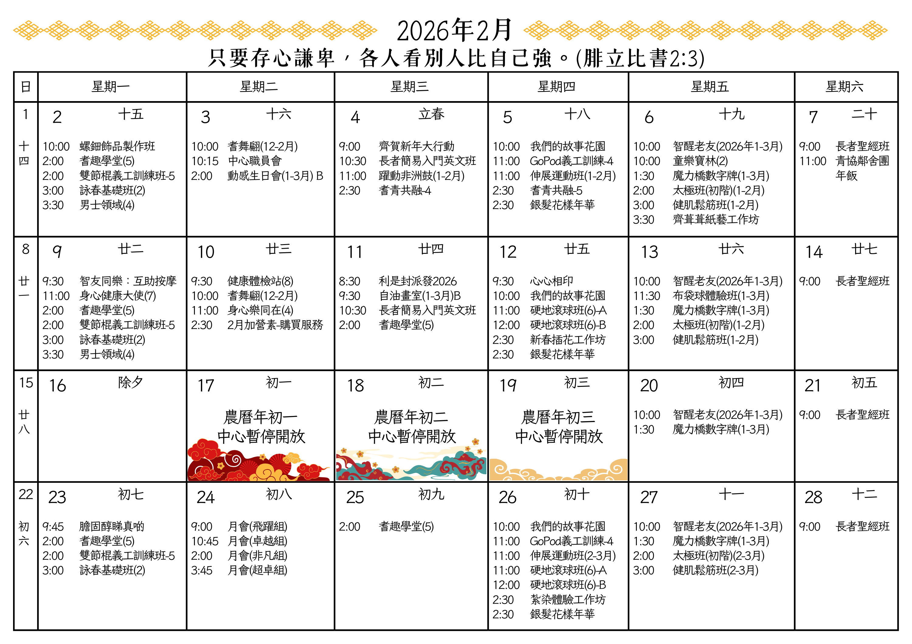 寶林浸信會白普理長者鄰舍中心2026年2月通訊