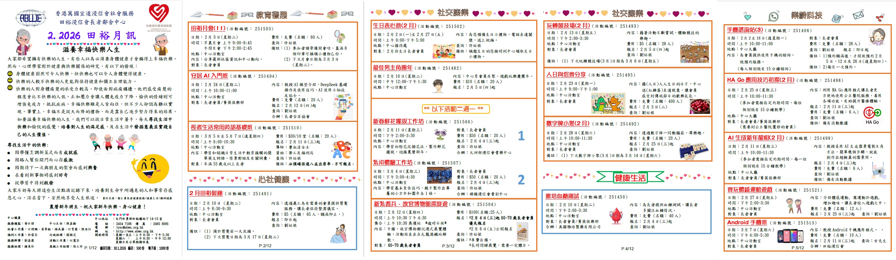 田裕浸信會長者鄰舍中心2026年2月份通訊