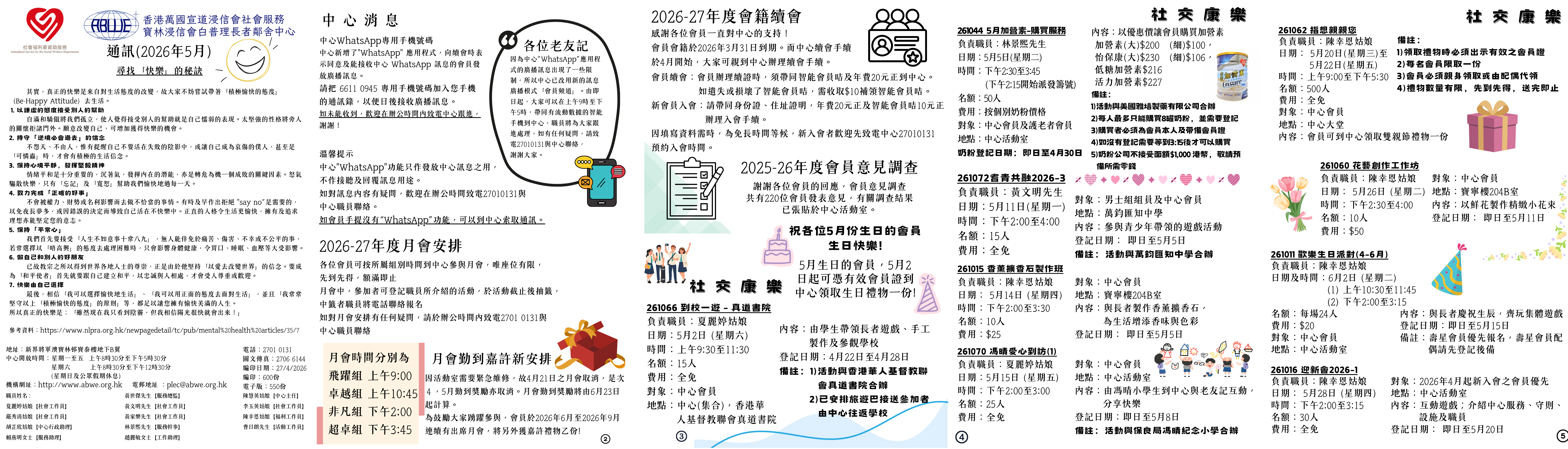 寶林浸信會白普理長者鄰舍中心2026年5月通訊